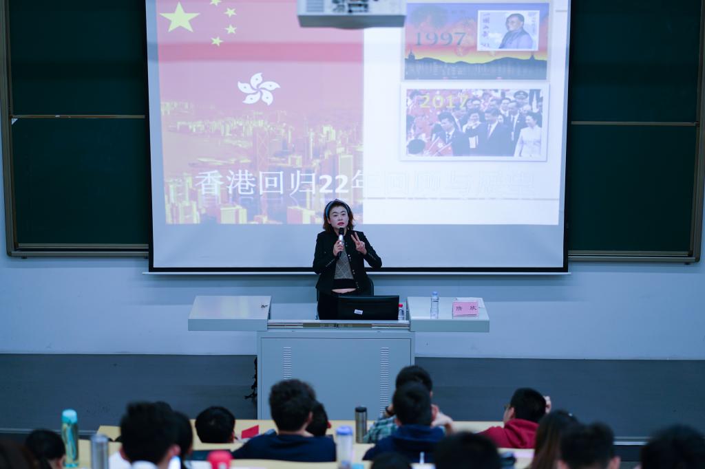 深圳大学马克思主义学院研究员隋欣围绕《香港回归22周年的回顾与展望》主题,重点讲述了香港这座城市的沧桑巨变和自回归以后发生的诸多历史事件,由此对我国“一国两制”政策,大湾区建设等展开了详尽的剖析和解读。
