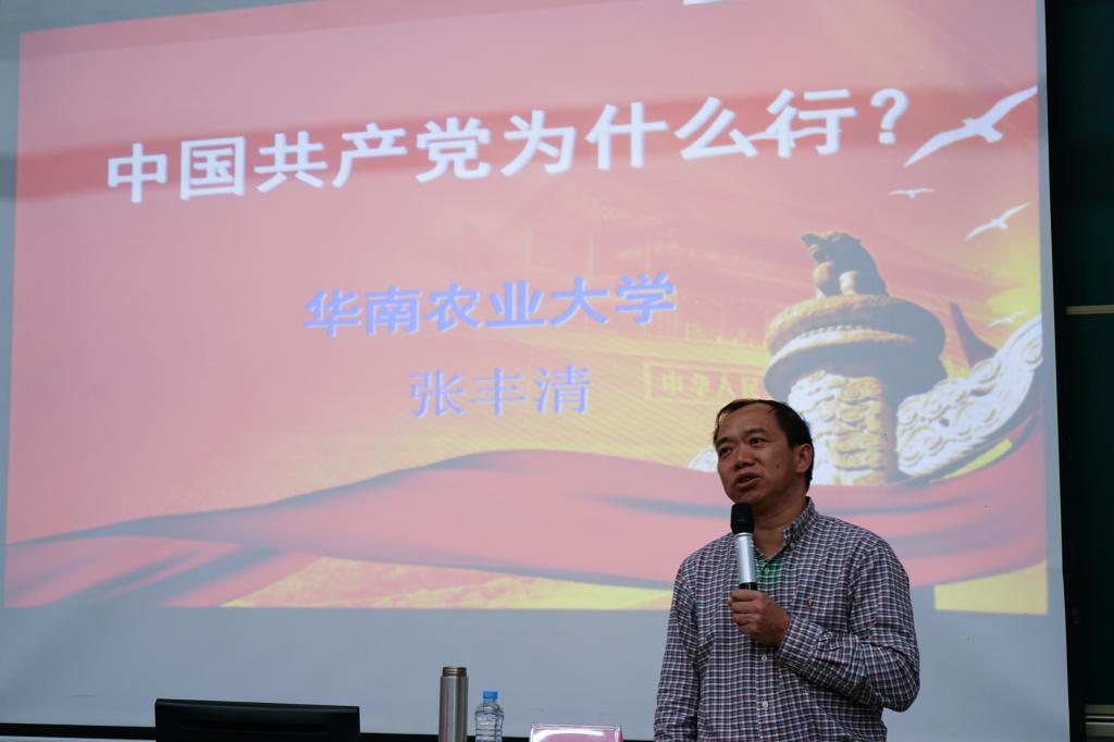 张丰清带来了题为《中国共产党为什么行》的主题讲座。他指出中国共产党之所以可以一路前行,正是因为这是一支有理想的队伍,是一支注重思想理论建设和精神建设的队伍,更是一支作风优良的队伍。同时,这支队伍有着完整严密的组织架构和广泛的统一战线,注重学习,能够勇于自我革命,自我革新。他号召学员们加强理论学习,要舍得在理论学习上下功夫、花力气,及时跟进学,全面系统学,联系实际学。