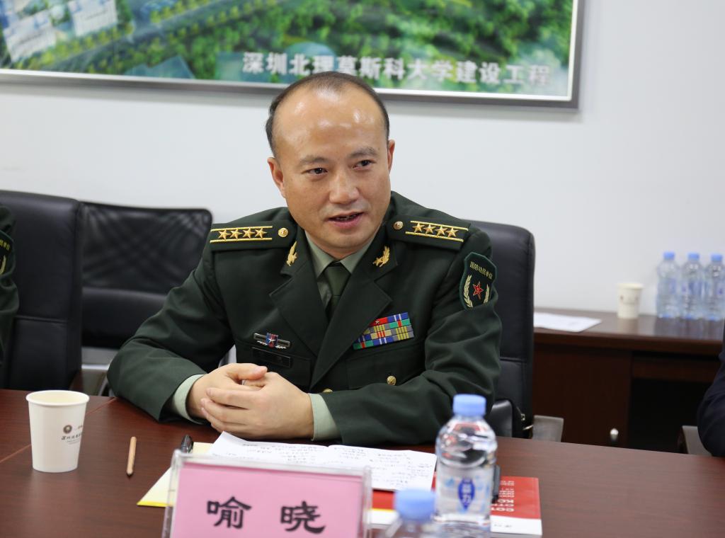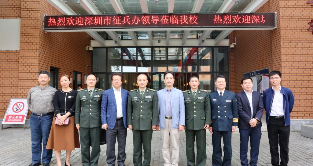 3月19日,深圳市征兵办公室主任、警备区副司令员喻晓,警备区动员处长王志文,警备区政治工作处主任赵华,龙岗区委常委、人民武装部部长冯志刚一行到学校调研交流,学校代理校长唐水源,党委书记、副校长陆万伟,相关部门负责人在过渡校区同到访领导就推进征兵工作、加强学校国防教育等方面进行座谈。