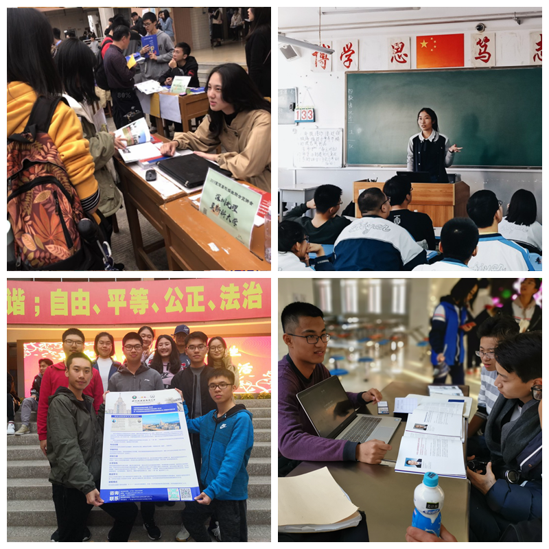 同学们重点针对高三年级组织宣讲会,也有部分团队参加了面向全校学生的咨询会。个别团队自行设计了宣传单页和《致母校的一封信》等宣传品,通过高中官方微信公众号推送了宣传文稿,录制宣讲现场视频。宣传工作现场有的是面向上千人的大型会场、操场,得到了大批家长、学生的关注;有的是面向几十人的报告厅、会议室、班级,通过一对一咨询为学生答疑解惑。宣讲内容详实,学生反映热烈。