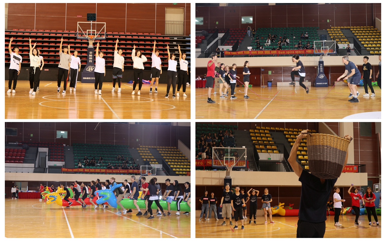 上午九点,在精彩的社团节目展示后运动会正式拉开帷幕。“男女混合接力跑”、“集体跳绳”、“旱地龙舟”等项目是速度与力量的较量;“抛绣球”、“你是我的眼”等项目则对选手的敏捷和协作提出了挑战。赛场边,啦啦队们为参加比赛的选手加油鼓劲,摇旗助威;赛场上,运动健儿们身姿矫健,争创佳绩。