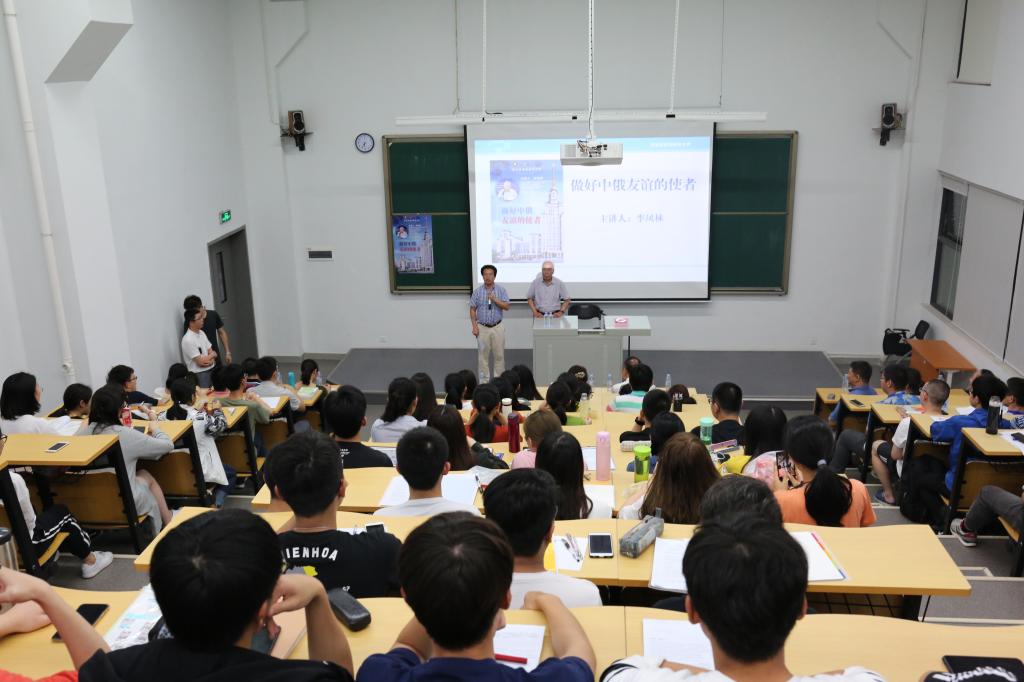 4月22日下午,我国资深外交家、著名翻译家、前驻俄罗斯大使李凤林到学校交流访问。李凤林大使以“做好中俄友谊的使者”为主题带来一场精彩讲座,向学生师生讲述他过往的求学和工作经历,还向学生分享了俄语学习的方式及技巧。