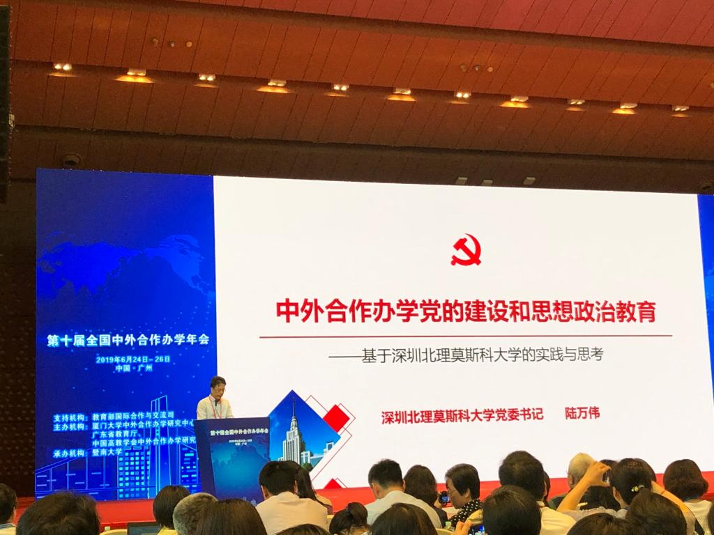 6月24日至26日,第十届全国中外合作办学年会在广州白云会议中心举行。本届年会的主题是“加快和扩大教育开放新形势下的中外合作办学”。学校党委书记、副校长陆万伟受年会组委会邀请在会上作主题报告,向数百位与会嘉宾分享学校在党建工作和思想政治教育方面的工作经验。