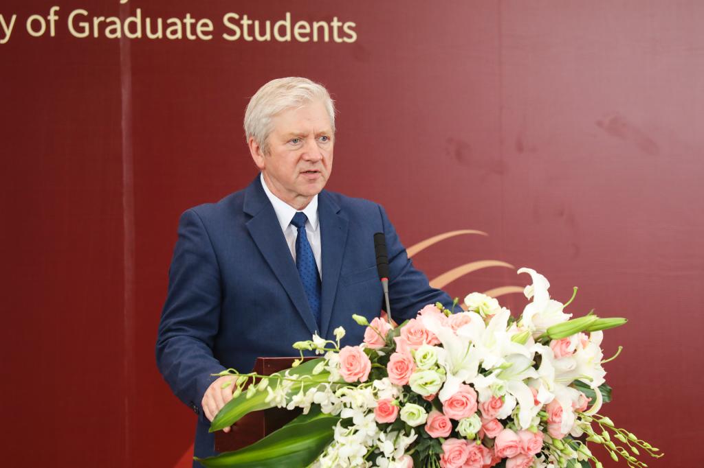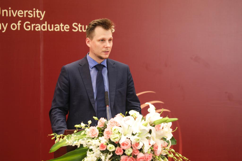 阿列克谢·塔拉索夫副校长宣读了毕业生名单并致辞。他表示,两年前这批毕业生在北京参加入学考试的场景依旧历历在目。这两年时间里,这批毕业生在学校收获的一切都是值得怀念的,他为这群毕业生感到自豪。