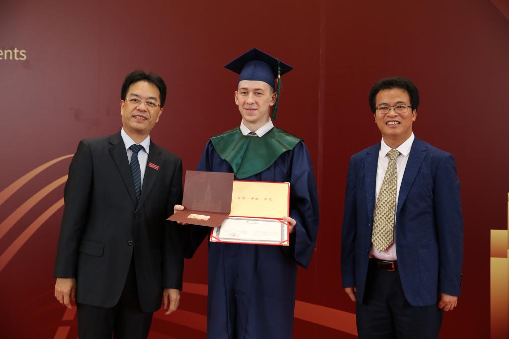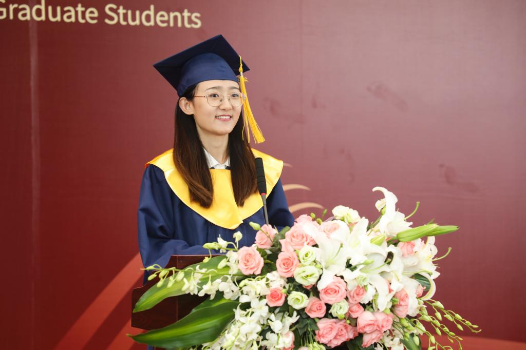 2019届硕士毕业生代表朱子薇同学代表首届硕士毕业生发言,“我想每位同学来到这所年轻的学校时都和我一样,下定决心将自己的青春、未来和理想与ac米兰官网中文网站的发展紧密联系在一起,希望谢·阿·涅多斯巴索夫老师给予我们的不仅仅是科学知识,更有人文情怀和理想。”