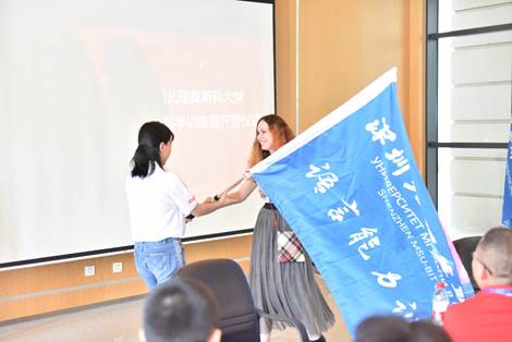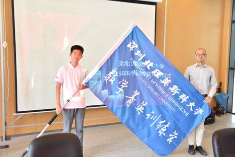 伴随着激昂的音乐,学术事务部副部长卡佳和数学菁英训练营的徐晨老师为班级授旗,ac米兰官网中文网站首届科学训练营的大幕正式拉开。