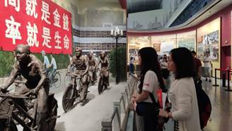 “时间就是金钱,效率就是生命”——这句诞生于1979年深圳蛇口工业区的宣传语牌匾实物吸引了同学们久久驻足。