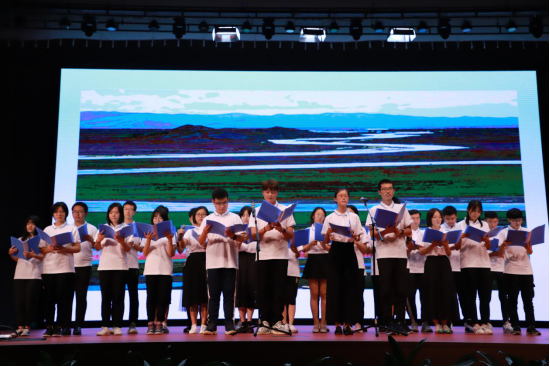 2019级经济一班和生物二班的新生以一首《歌唱祖国》和俄罗斯歌曲《故乡从哪里起源》拉开了晚会的序幕。