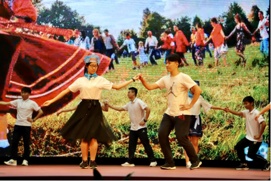 材料二班和数学二班的新生还为大家带来了节奏欢快的俄罗斯民族舞蹈《卡林卡》,女同学们头戴传统发饰、男同学们身穿绣花衬衣翩翩起舞,让在场观众仿佛置身于俄罗斯的风土人情中。