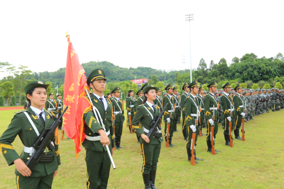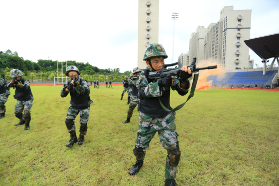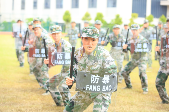 反恐防暴、短兵对抗、解救人质、护卫国旗……一幕幕扣人心弦、震撼逼真的演练场面在学校体育场陆续上演。2019级全体学生以饱满的精神、昂扬的斗志和矫健的身姿向参加检阅的领导及嘉宾展示了过去8天的军训成果。今年的军训除了常规的站军姿、踢正步,军体操等传统项目外,还引进了防恐、防暴、应付突发公共安全事件等新内容。