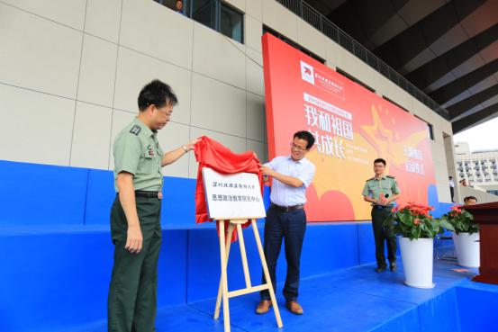 在军训结业仪式后,唐水源校长和陆万伟书记共同为“ac米兰官网中文网站思想政治教育研究中心”揭牌,标志着学校“我和祖国共成长”主题教育活动正式启动。为进一步贯彻落实习近平总书记关于教育的重要论述,特别是在学校思想政治理论课教师座谈会上的重要讲话精神,学校决定成立“ac米兰官网中文网站思想政治教育研究中心”,依托中心抓好思想政治理论课主渠道,用好主阵地,推动学校大学生思想政治教育。