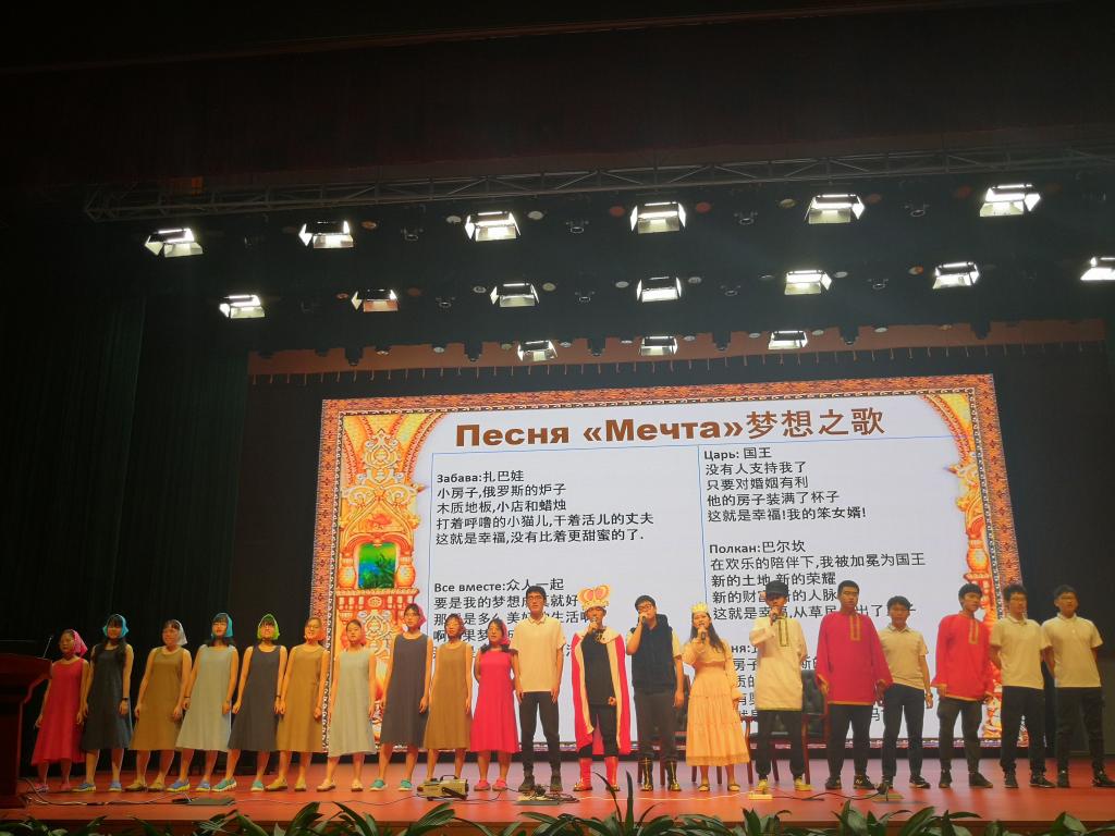 “因为有梦想,我们可以银河摘星、建造飞船!但梦想也需要依靠朋友们的帮助实现。”俄罗斯童话世界小组的学生们在现场上演了一出关于爱情、愿望、善良和友谊的魔幻童话话剧--《飞船》。