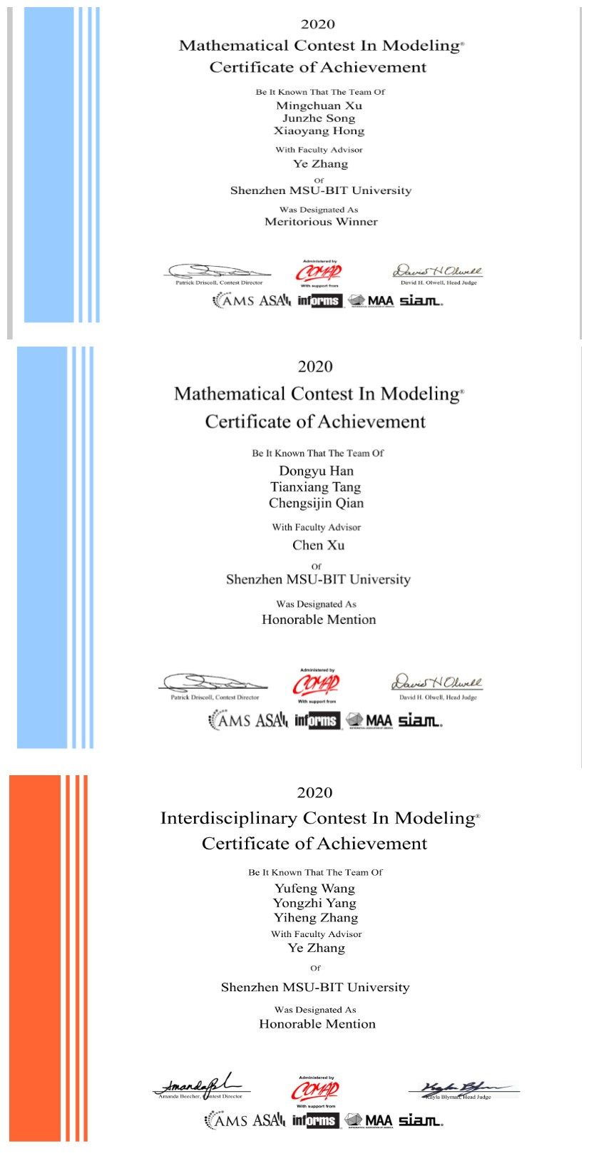 近日,2020年美国大学生数学建模竞赛(MCM/ICM)结果正式公布,ac米兰官网中文网站代表队荣获一等奖(Meritorious Winner)1项、二等奖(Honorable Mention)2项、成功参赛奖(Successful Participant)4项。这是学校首次参加国际性数学建模竞赛并取得佳绩。