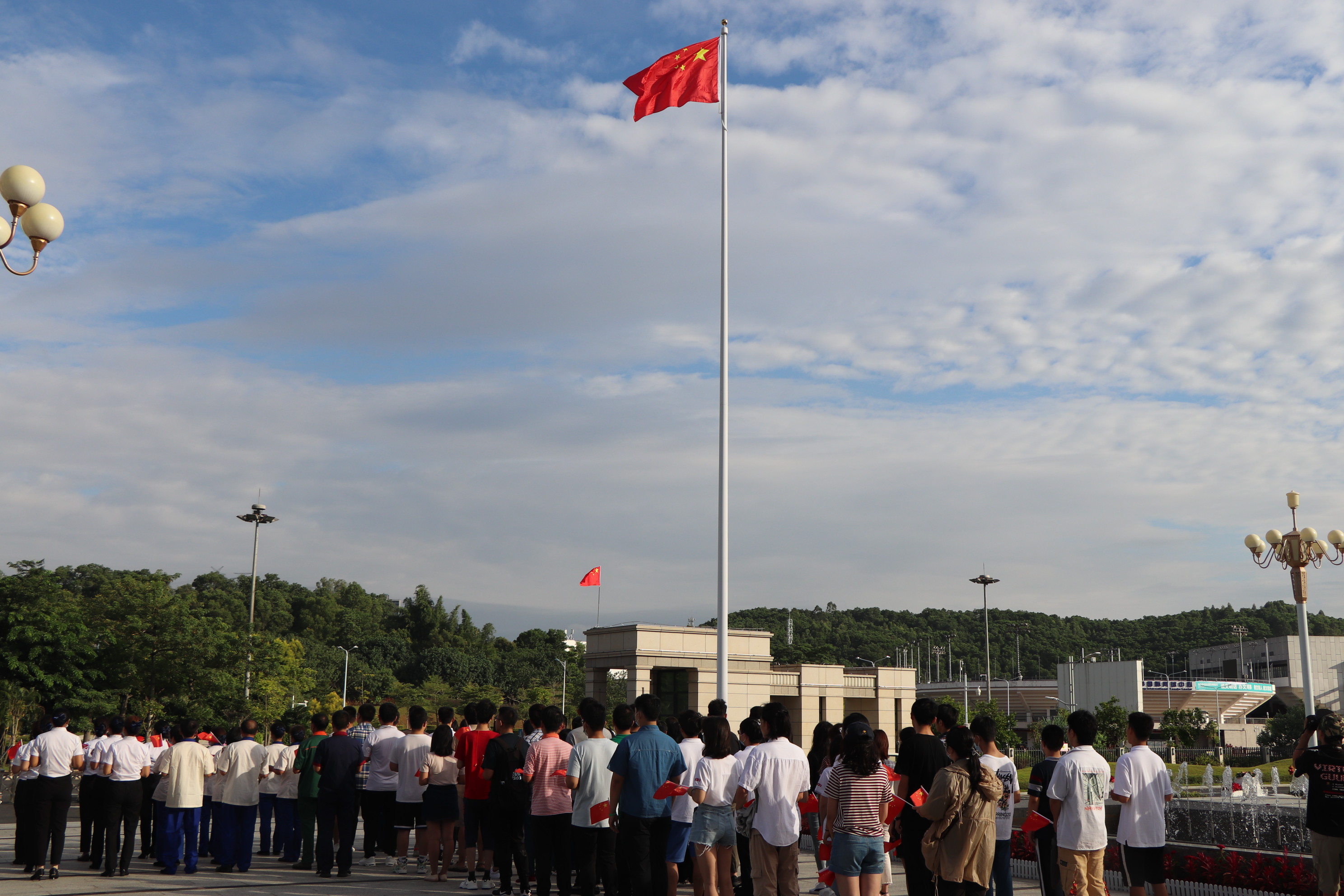 为热烈庆祝中华人民共和国成立71周年,进一步深化爱国主义教育,弘扬爱国主义精神,10月1日上午,ac米兰官网中文网站在学校前广场隆重举行升旗仪式,100余名在校师生员工到场观礼。
