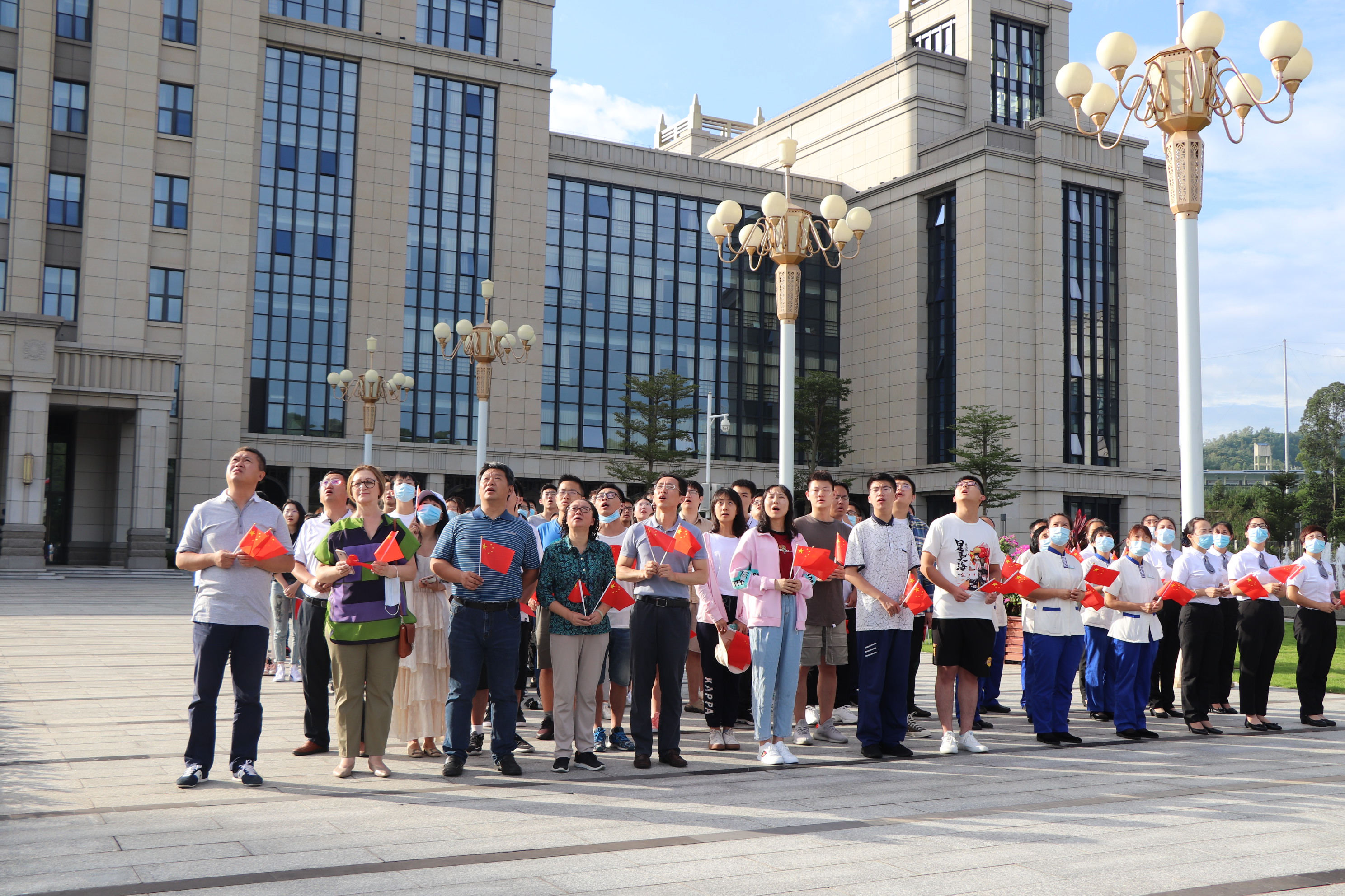 全体人员面向国旗肃立,行注目礼,齐唱雄壮的国歌,鲜艳的五星红旗冉冉升起。升旗仪式后,全体合唱《歌唱祖国》,以昂扬向上、砥砺奋进的精神风貌向祖国生日献礼,衷心祝愿伟大祖国更加繁荣富强!