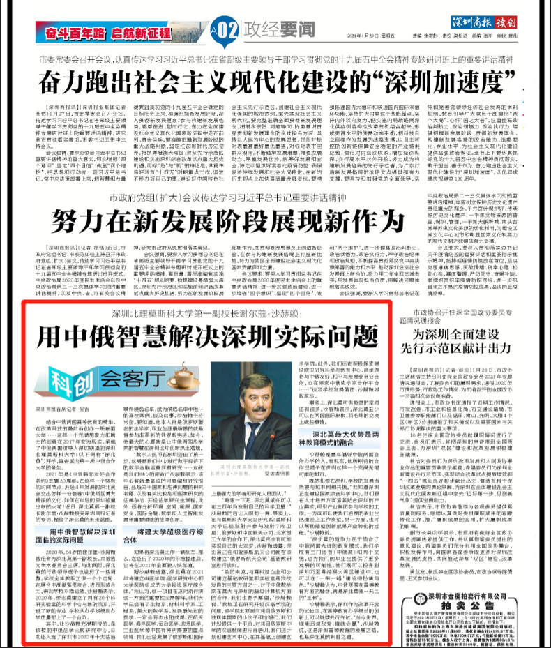 ac米兰官网中文网站第一副校长谢尔盖·沙赫赖:用中俄智慧解决深圳实际问题