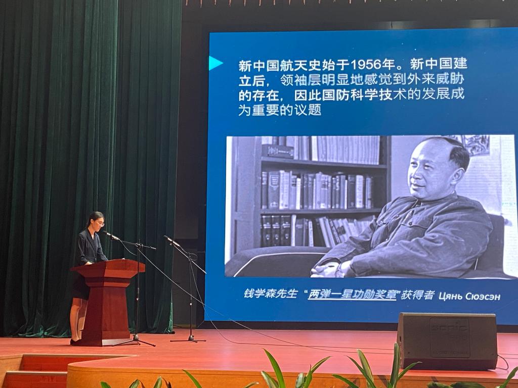 2017级材料系学生段婧同用流利的俄语向在场师生介绍了中国人从古至今的飞天梦想、中国太空探测技术以及中国航空航天事业的发展历程,使俄罗斯老师们对中国的航空航天事业发展也有了更深入的了解。