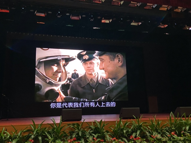 随后,在场师生共同观看了俄罗斯纪录片«Гагарин—Первый в Космосе» (《搏击太空》)片段。该片详细讲述了前苏联宇航员尤里·加加林成功实现人类第一次太空飞行的过程,通过大量纪实录像真实地还原了发射场面。影片中扣人心弦情节给大家留下了深刻的印象,增进了同学们对首次太空飞行的了解。俄语中心教师德米特里·克留科夫告诉同学们,航空航天事业对人类的发展至关重要,希望大家能努力学习知识、打好理论基础,怀抱太空梦,探索新高度。