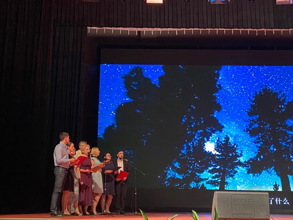 最后,俄语中心的俄罗斯教师们共同演唱了歌曲«Этот Большой Мир»(伟大地球)。该曲由罗伯特·罗日杰斯特文斯基的诗歌改编而成,表达了人类对天空的向往,对大自然的亲近。