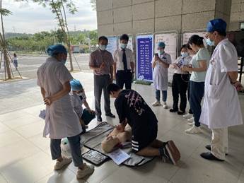此外,学校还邀请校医务室联合在安全宣传咨询日活动现场开展急救知识教学活动,医生详细讲解心肺复苏的急救知识,并利用人体模型进行了实际操作演示,细致而生动,师生们兴趣浓厚,积极进行急救实践,学习效果很好。