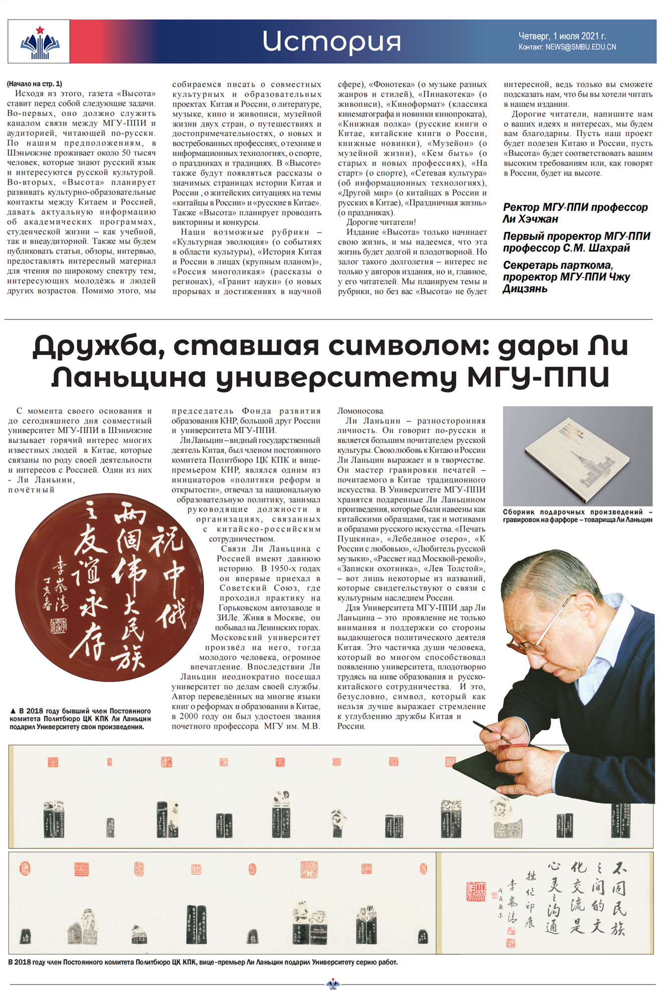 “创办校报《高度Высота》,我们心心念念,因为我们胸间藏火热理想、肩上扛光荣使命。”李和章校长说,ac米兰是在中俄两国领导人重要共识下创建的大学,希望借由校报《高度Высота》创刊这一契机,为中俄关系注入新生机、新活力,助推中俄两国友好关系再攀高峰。李和章校长介绍,将校报命名为《高度Высота》,是出于一段美妙的联想、一种殷切的期待、一份执着的追求。“高度”不仅是指从最低点到最高点的距离,也借指一定的发展水平和发展境界。他期待,《高度Высота》能成为学校推进中俄文化教育领域合作的重要平台之一。