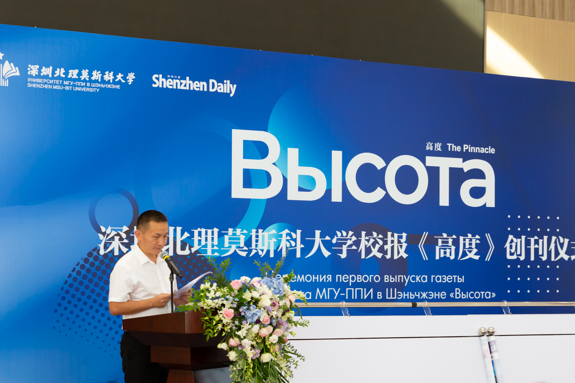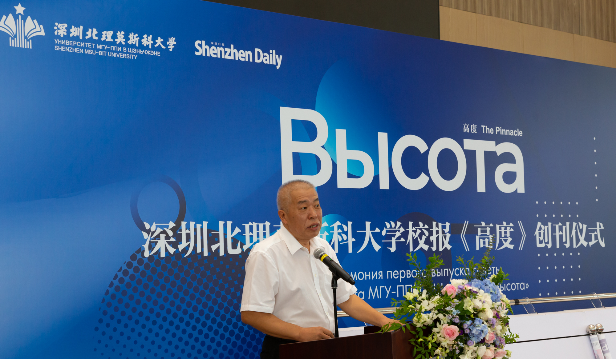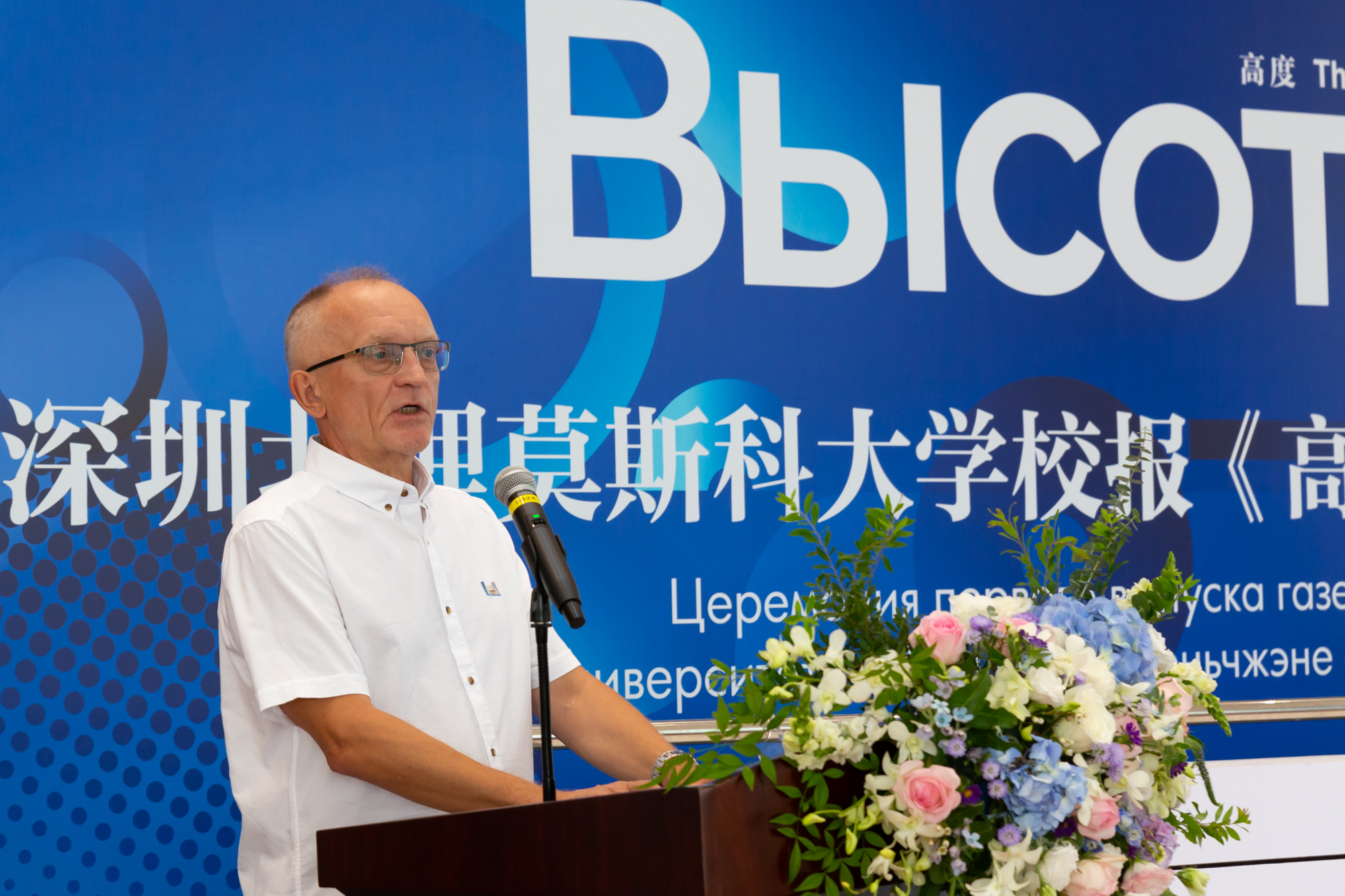 创刊成员代表、语言文学系系主任列杰涅夫教授代表全体创刊成员对《高度Высота》的面世表示热烈祝贺和衷心感谢。他表示,校报的创刊日意义重大:因为今天是中国共产党成立100周年。作为创刊成员之一,深知此份报纸仍有许多待改进的地方,他们会继续学习,希望校报能像名字一样敏锐而精确,像雄鹰一样展翅高飞,吸引深圳这一荣耀之城所有人的目光。