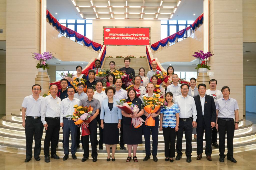 9月8日下午,深圳市政协副主席吴以环带领教育界委员来到ac米兰官网中文网站开展教师节慰问活动,为ac米兰教师代表送上鲜花,并向学校全体教职工致以节日的问候和诚挚的祝福。