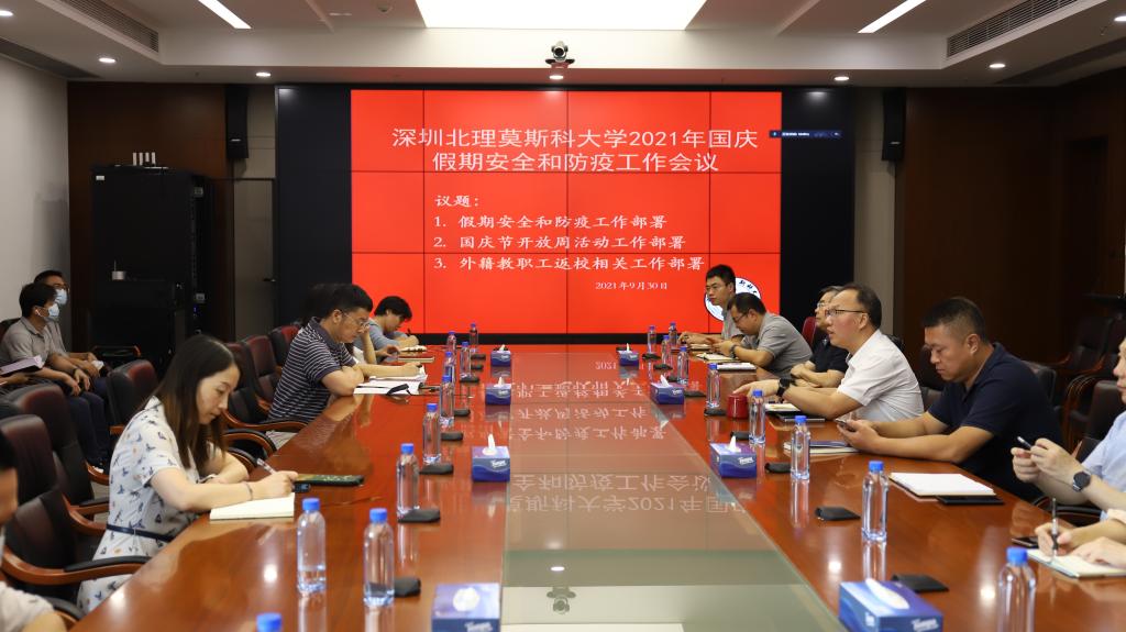 会上,条件保障部相关负责同志对假期安全和防疫工作、国庆节开放周活动以及外籍教职工返校相关部署工作做了介绍。