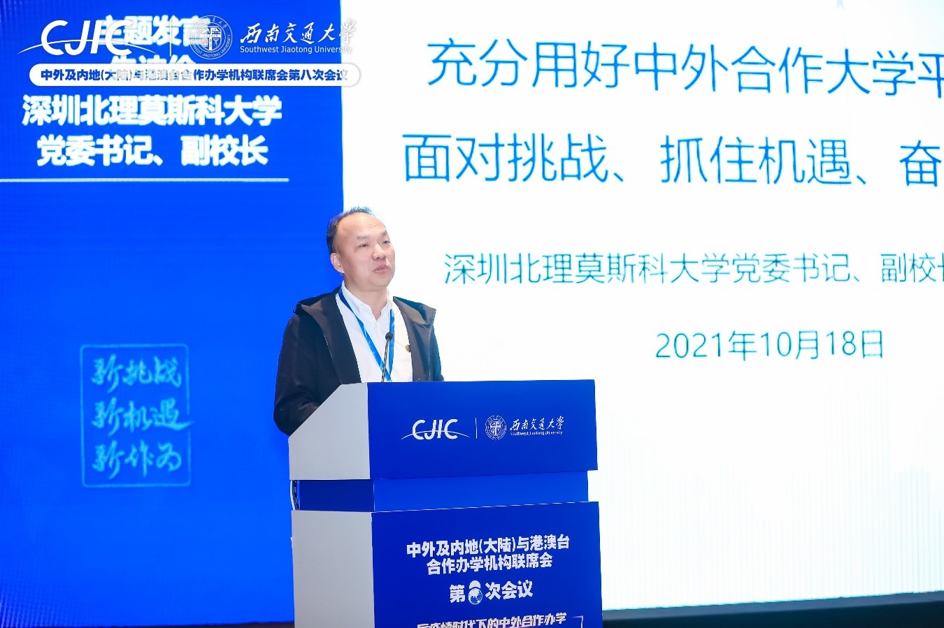 10月18日上午,ac米兰官网中文网站党委书记、副校长朱迪俭应邀参加在成都举办的“中外及内地(大陆)与港澳台合作办学机构联席会第八次会议”并作主题演讲。