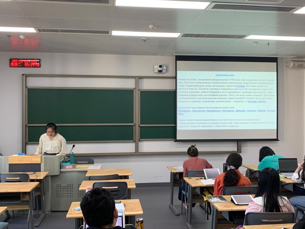 “普希金之秋”研讨会是语言系一年一度的特色文学论坛,旨在以纪念“普希金皇村中学日”为契机,对普希金文化遗产和俄罗斯诗歌黄金时代代表人物及其代表作品进行剖析和研讨。除此之外,语言系还组织各年级本科生和研究生积极参与了由莫斯科国立大学(МГУ)与国际俄罗斯语文教师协会(МАПРЯЛ)主办的主题为“陀思妥耶夫斯基诞辰140周年”的线上文学知识竞赛。