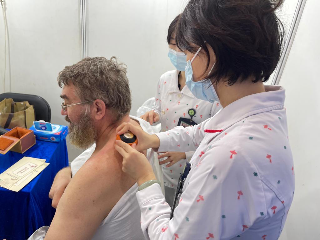 中医特色疗法体验分为三个不同的疗法,分别是竹药罐、雷火灸以及耳穴压豆。现场设有三个隔间,来参与疗法体验者可以进入不同隔间进行各具特色中医理疗体验。
