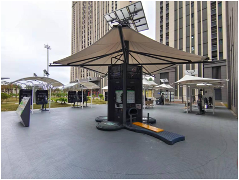 据介绍,室外智能健身房包括体质测试区、智能数字训练区、智能竞赛区等核心区域,器械分别为:集成体质测试系统、立式健身车、上肢•肩关节双功能训练器、推胸•划船双功能训练器、高拉•推举双功能训练器、深蹲•提踵双功能训练器、腿部屈伸双功能训练器、腹背肌训练器、上肢屈伸双功能训练器、智能竞赛车等,师生测试后,智能设备会像私人健身秘书一样,记录同学们每次锻炼成绩,并将反馈到手机上。