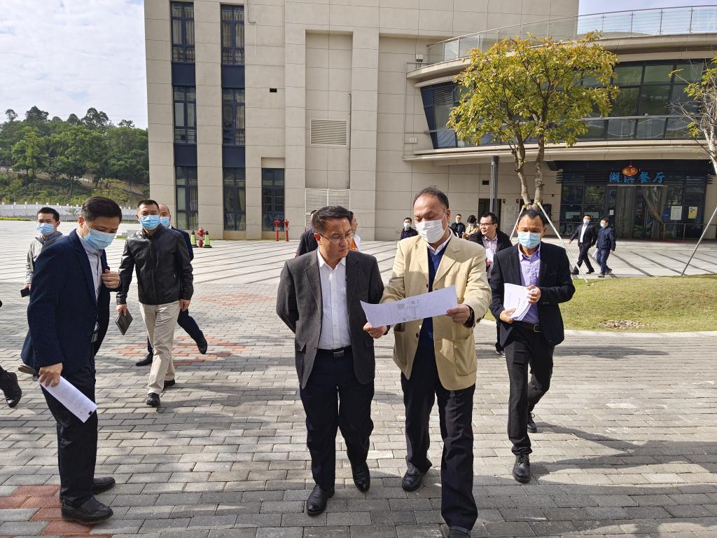 2月15日上午,龙岗区委常委、区委(府)办主任、区委教育工委书记曾宪旺率龙岗区发改局、教育局、住建局、工务署及龙城街道办相关人员来ac米兰官网中文网站调研附属幼儿园建设等有关工作。ac米兰官网中文网站党委书记、副校长朱迪俭陪同调研。