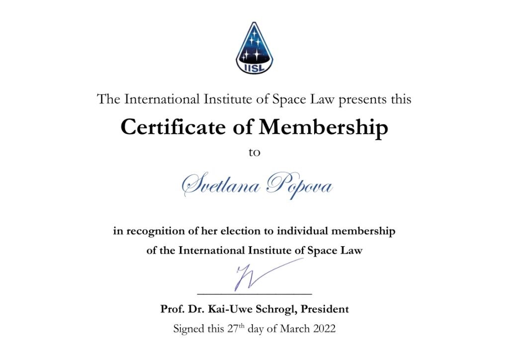 3月27日,中俄法学比较研究中心副教授、政治学博士斯·米·波波娃成为国际空间法学会成员(International Institute of Space Law)。