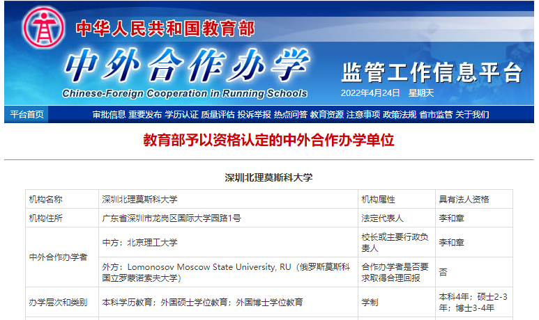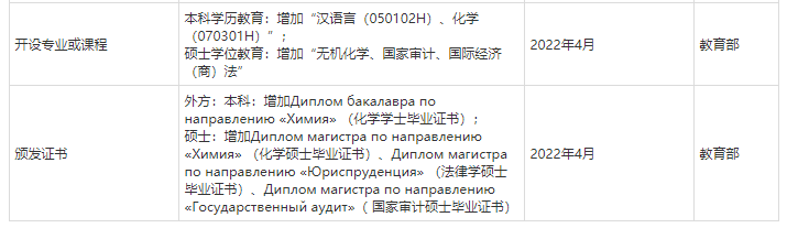 近日,教育部中外合作办学监管工作信息平台公布了学校新专业申报的获批信息。2022年4月,学校增设2个本科学历学位教育:化学(070301H)与汉语言(050102H);3个硕士学位教育:一级学科“化学”下的无机化学、一级学科“工商管理”下的国家审计、一级学科“法学”下的国际经济(商)法。
