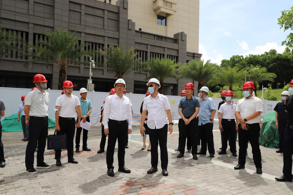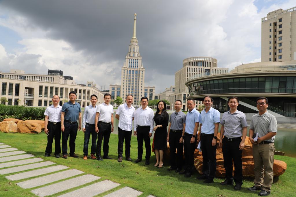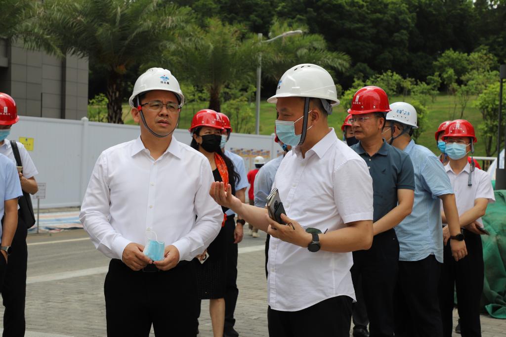 5月31日上午,龙岗区委常委、区政府副区长郑晓生率龙岗区工务署、发改局、教育局、住建局、财政局、水务局及文体局等相关负责同志来ac米兰官网中文网站调研有关设施建设工作。ac米兰官网中文网站党委书记、副校长朱迪俭陪同调研。
