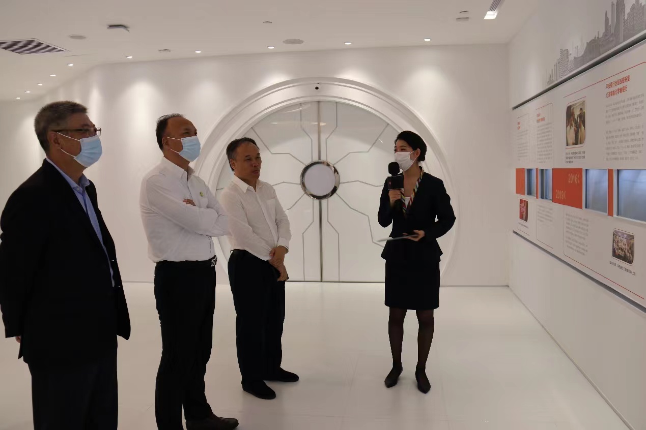 朱迪俭书记首先来到了平安银行智慧展厅,在行长助理孙芳滔的陪同下听取了关于平安银行发展历程、主营业务及各项发展情况的讲解。