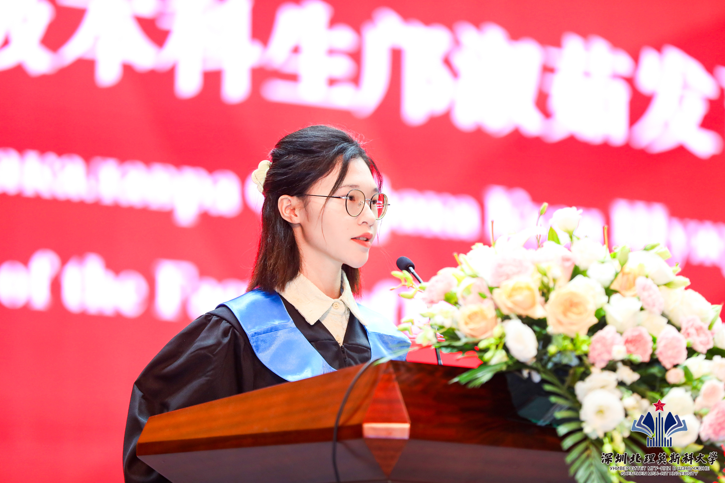 2018级语言系学生邝淑茹代表毕业生发言,表达了对母校的感激之情。“在ac米兰,中俄文化的交流为我们打开了认识世界的窗口,我们在这里学会读懂世界;授业解惑的每一位引路人为我们装裹知识的行囊,我们在这里遨游学术海洋;ac米兰的课堂不仅局限在教学楼内,还走出校园,给予我们更多与社会连接的机会。”她表示,对母校最好的致敬,对青春最好的致敬,就是继续书写新的奋斗故事。