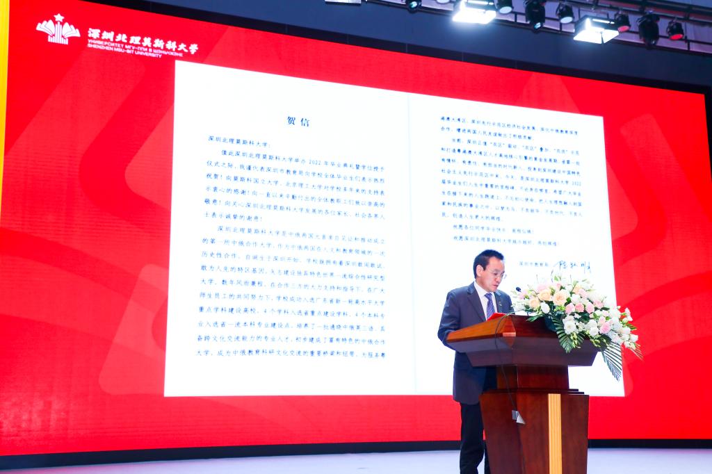 深圳市委教育工委书记、市教育局局长陈秋明发来贺信,代表深圳市教育局向全体毕业生表示祝贺。他在贺信中表示,ac米兰初步建成了富有特色的中俄合作大学,成为中俄教育科研文化交流的重要桥梁和纽带,为服务粤港澳大湾区、深圳先行示范区经济社会发展,增进两国人民友谊作出了积极贡献。他希望广大毕业生在接下来的人生跑道上,不忘初心使命,把人生理想融入到国家和民族的事业之中,以梦为马、不负韶华、不负时代、不负人民,创造人生更大的辉煌。