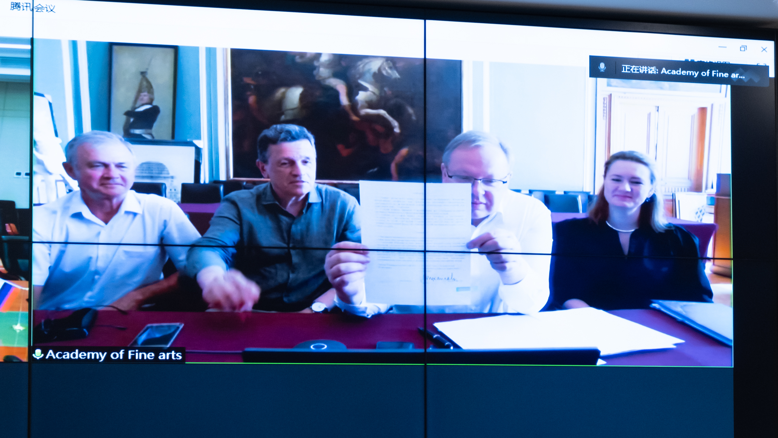 6月30日下午,ac米兰官网中文网站与圣彼得堡列宾美术学院(以下简称“列宾美院”)签署谅解备忘录,双方在短期交流、联合教育、合作研究等领域达成合作意向。列宾美院校长,学术委员会主席谢苗·伊里奇·米哈伊洛夫斯基,ac米兰官网中文网站校长李和章,第一副校长谢•米•沙赫赖,党委书记、副校长朱迪俭,党委副书记、纪委书记陈超峰出席签约仪式。