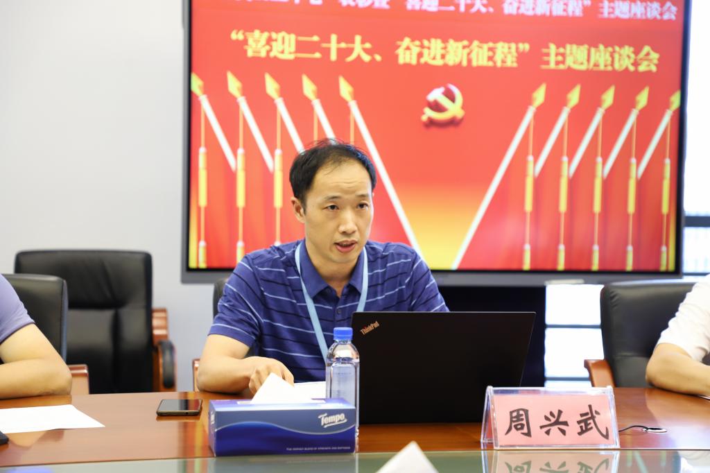 在座谈会环节,教师第一党支部书记周兴武代表先进党支部发言。他从提升自身理论水平、加强内部沟通交流、坚持工作前移和下沉三个方面谈了自己的认识,并表示将持续深化学习和实践,切实把思想和行动统一到学校党委的各项决策部署上来,以实际行动迎接党的二十大胜利召开。