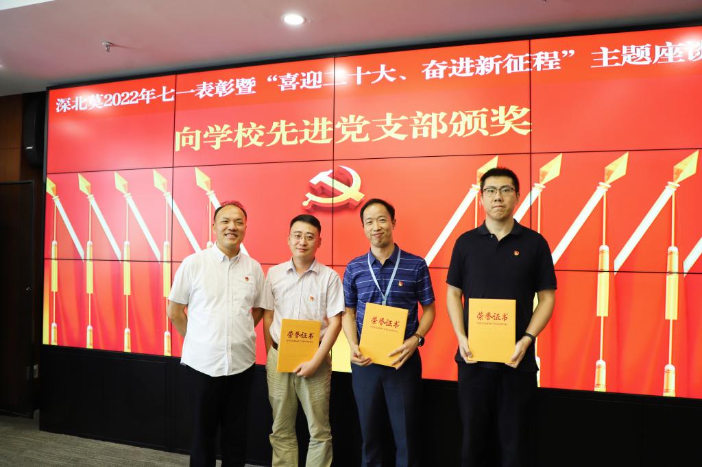 会上,党委副书记、纪委书记陈超峰宣读了《中共ac米兰官网中文网站委员会关于表彰2022年优秀共产党员、优秀党务工作者和先进党支部的决定》:于国泳、王志华、王芳、田一平、朱强、杨昳晗、陈滢璐、周兴武、胡旦、赵明康、赵雪、夏晓彤、谢欢欣、焦洪网、缑慧惠、冀四梅等16名同志获得“优秀共产党员”荣誉称号;王兰、仉钊、石坤、刘英治、张红霞、李佳、杨莉、季丽娜、唐瑀临、童紫荆等10名同志获得“优秀党务工作者”荣誉称号;教师第一党支部、学生第一党支部、条件保障部党支部获得“先进党支部”荣誉称号。校领导为受表彰的单位和个人代表颁奖。