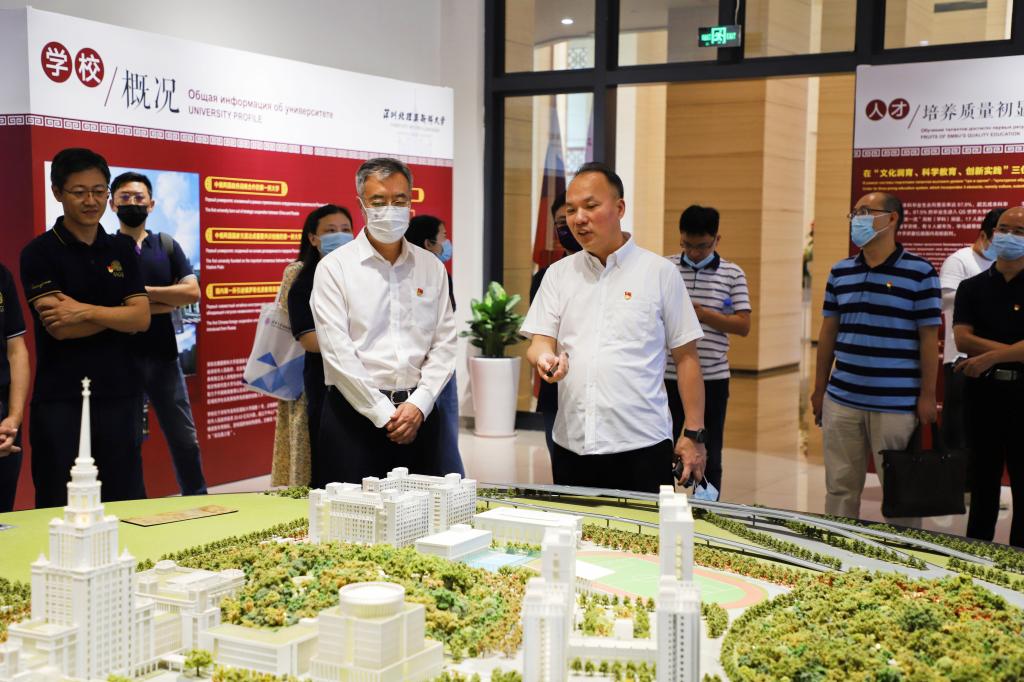 访问团一行先后实地调研参观了校图书馆、学校办学历程展览、《恰同学少年—留苏档案见证百年复兴路》主题展览、中共六大主题展览暨党史现场教学基地等。