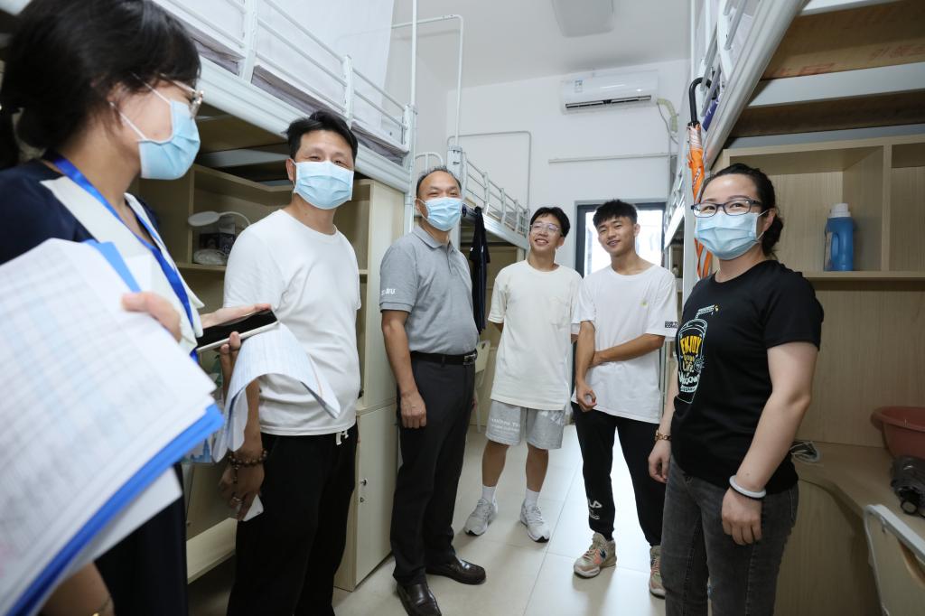 ac米兰官网中文网站校长李和章,党委书记、副校长朱迪俭,党委副书记、纪委书记陈超峰及有关部门负责人于当天上午和下午分别来到新生报到现场及新生宿舍,详细了解新生报到、注册、入住等有关情况并与新生及家长亲切交流。