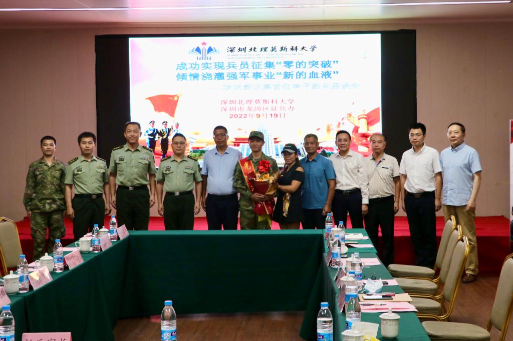9月19日,为欢送新兵入伍,并进一步加强学校与驻地征兵机关联系,推动今后学校征兵工作迈上新台阶。由学校党委副书记、纪委书记陈超峰带队,组织学校相关部门负责人、新兵家属等赴龙岗区双龙军事训练基地,参加征兵工作座谈会暨欢送新兵入伍仪式。龙岗区委常委、人民武装部政治委员杨华、人民武装部部长朱洪亮出席本次仪式。