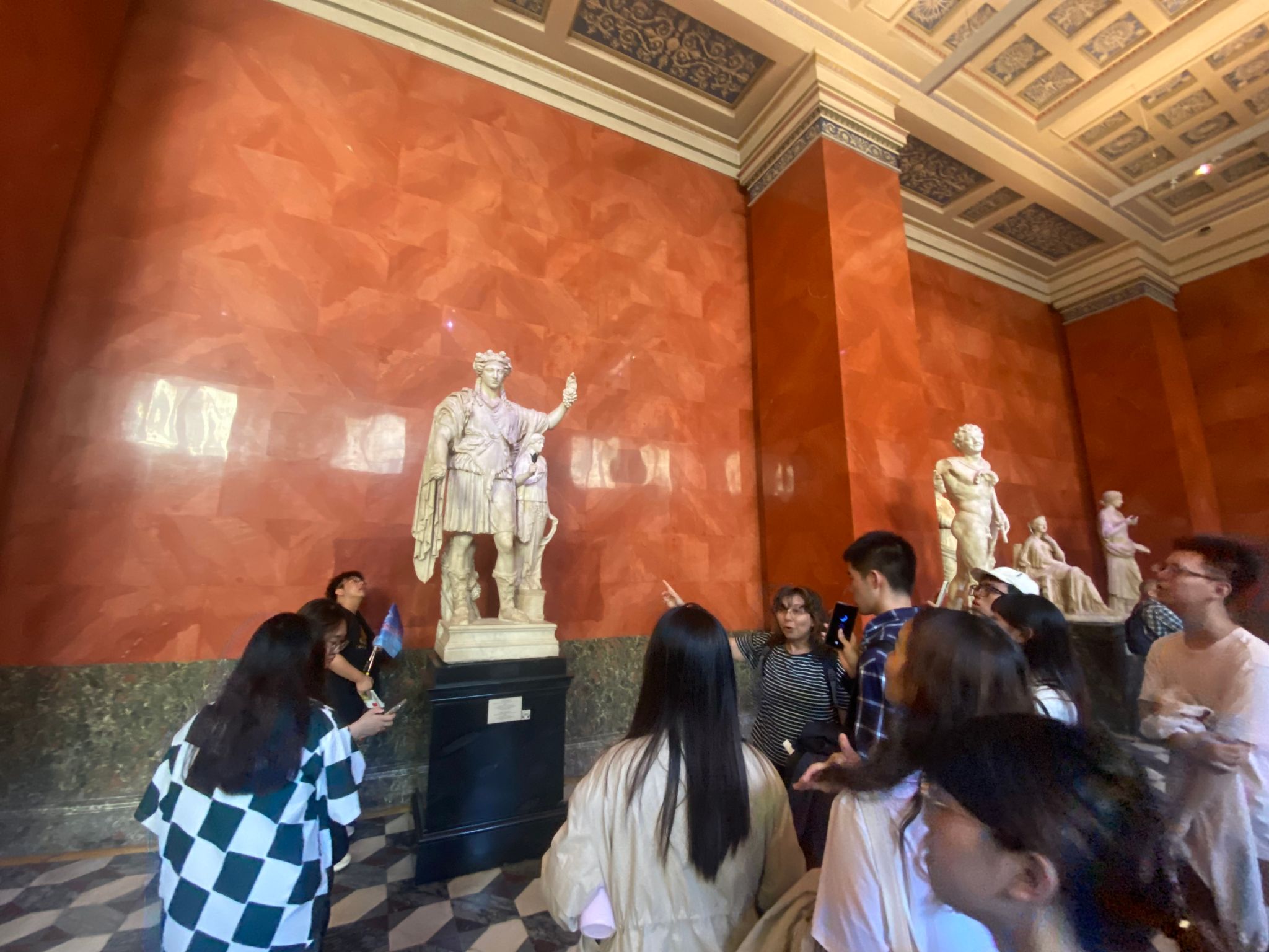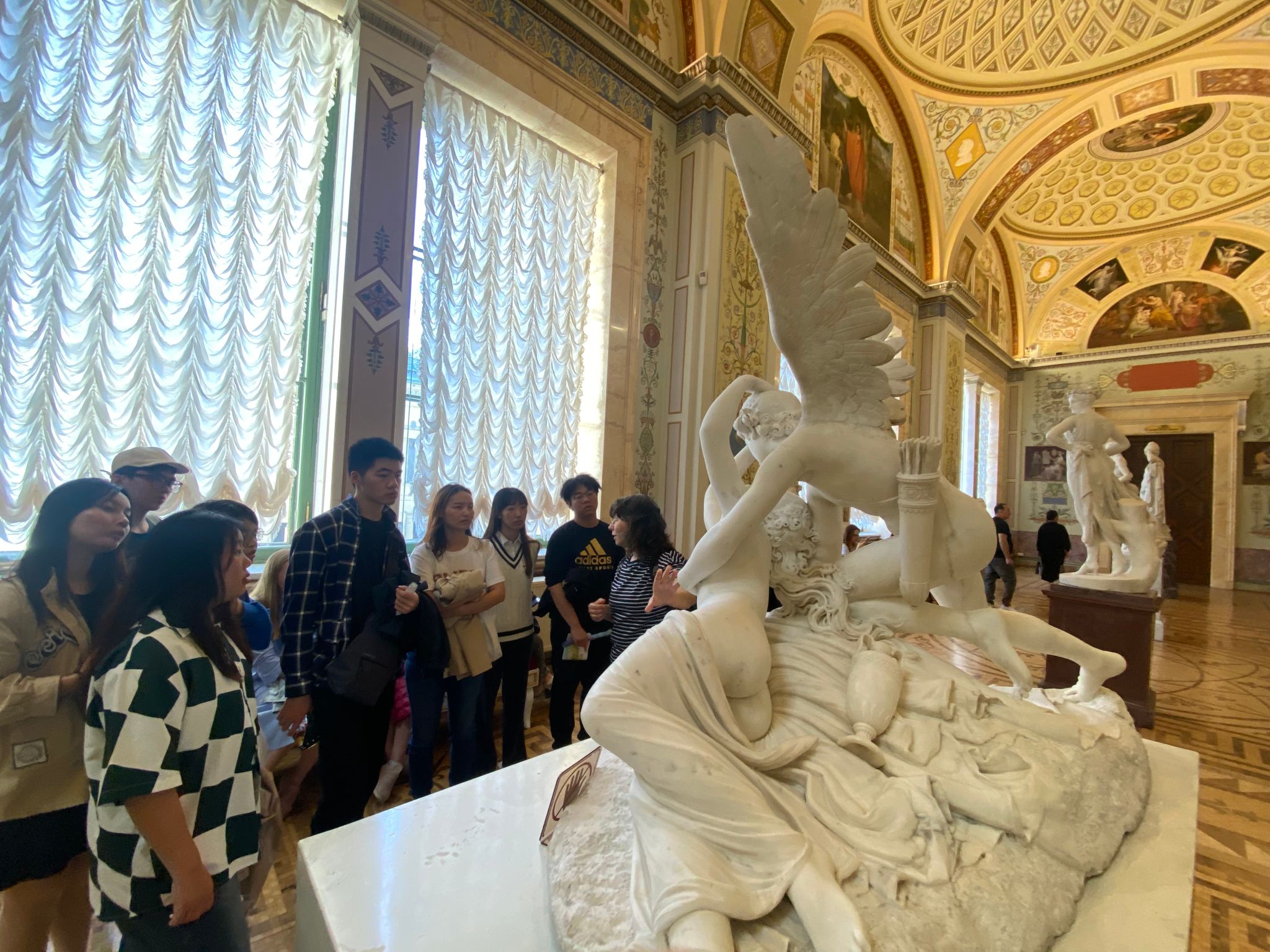 卢思米同学:“我们参观了被誉为“世界四大博物馆之一”的埃尔米塔什博物馆。它原为俄国沙皇的皇宫,是18世纪中叶俄国巴洛克式建筑的杰出典范。在参观的过程中,我多次被博物馆中富丽堂皇、充满历史感的装饰所震撼。在导游的细心讲解下,我们欣赏了贵重的名画、教堂古物,窥见了几百年前的浪漫而古典的俄罗斯。”