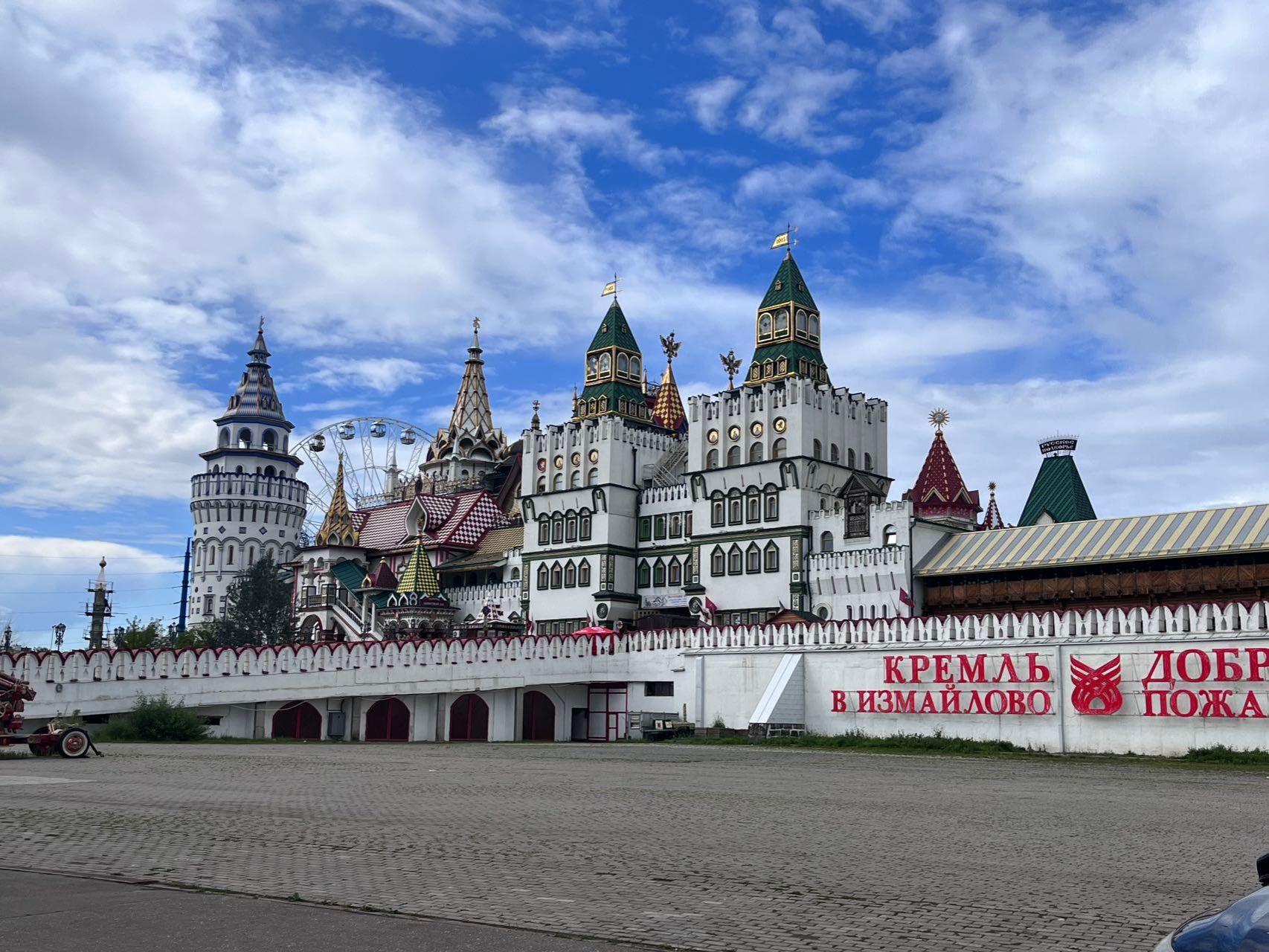 7月23日,实践团的成员们来到了位于莫斯科东北角的伊斯梅洛沃市场,因其读音相似,伊斯梅洛沃市场也被许多游客戏称为“一只蚂蚁”,这是莫斯科最著名的跳蚤市场。市场的外圈是色彩鲜艳的城堡建筑,走进这里,仿佛置身于童话场景,入口处的几家餐厅烤着“大串”,时不时地飘来诱人的香气。