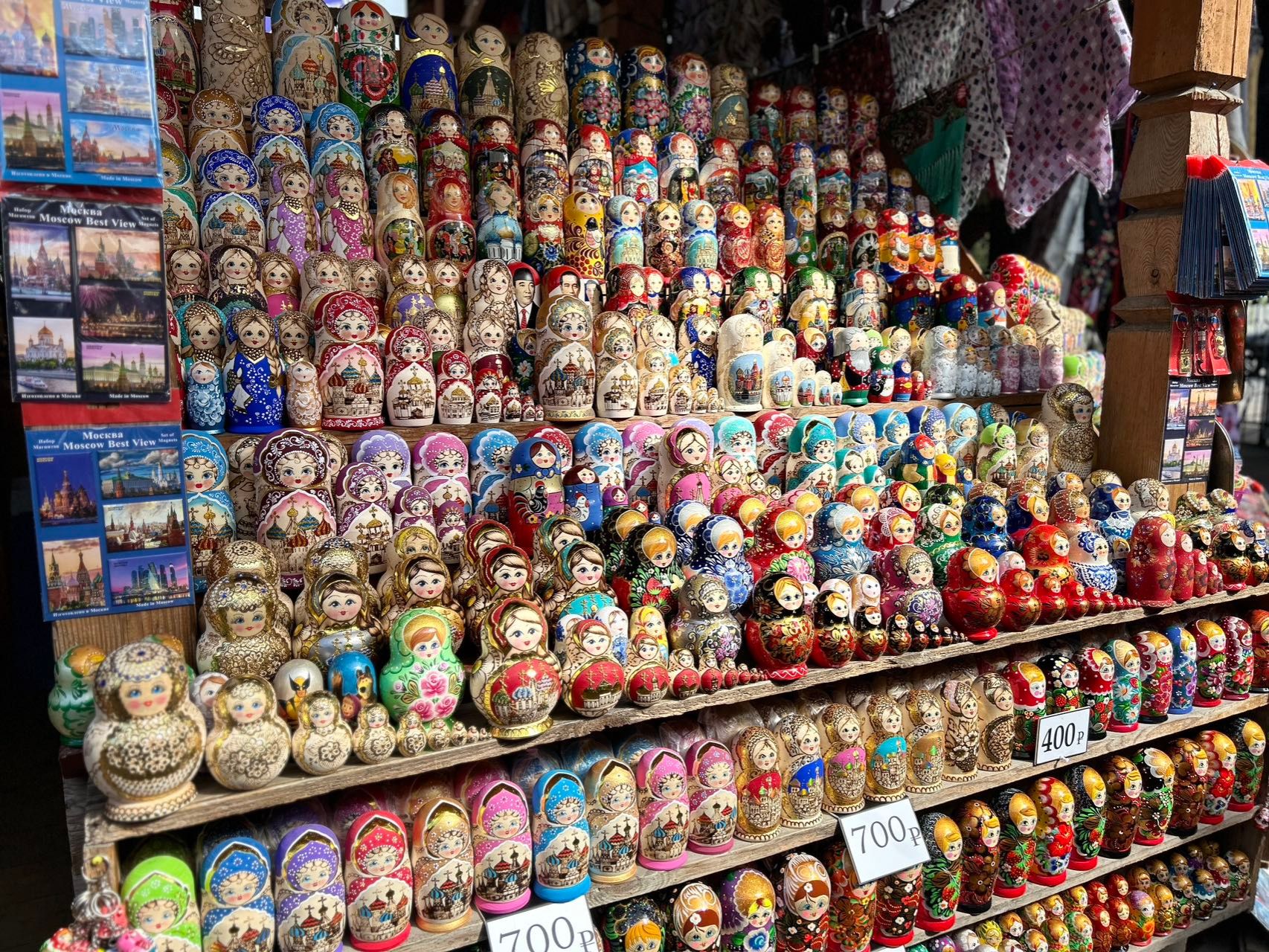 在这座规模庞大的集市上,到处都是艺术品、手工艺品、古玩、苏联时期的用品。在这里能够找到莫斯科最大规模的原创系列套娃、涂瓷釉的木盒子和漆器,还有少量的传统木质工艺品。