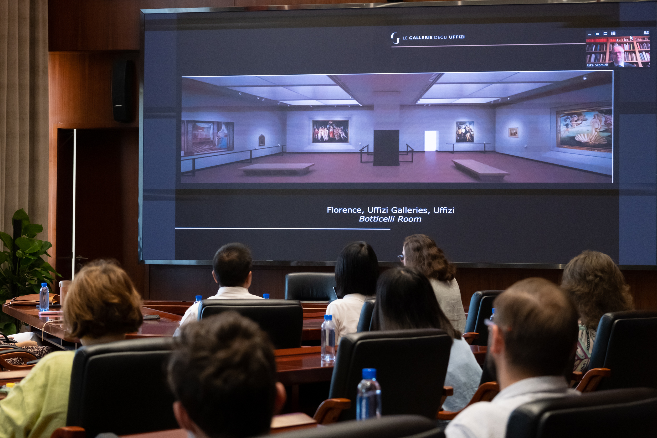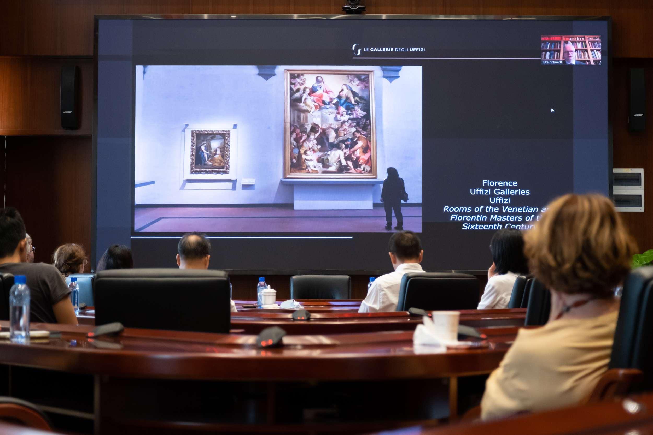 10月21日,乌菲兹美术馆和皮蒂宫馆长,埃克·施密特博士在ac米兰官网中文网站知识文化科学节上举办题为《博物馆装置中的创新原则和新技术》的英语艺术讲座。讲座以视频连线方式进行,到场师生与施密特博士一起线上参观著名的博物馆,欣赏古代艺术大师和文艺复兴时期的杰出作品。施密特博士讲解了创新原则和新技术在博物馆工作中的应用,并回答现场提问。