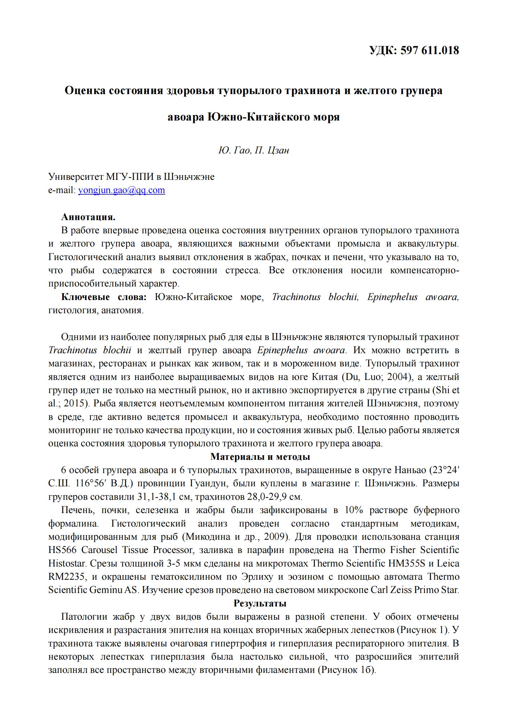 两人开展的研究工作是在生物系鱼类学专家Kristina Zhukova老师的指导下,在学校生物学实验室完成的。论文致力于研究具有较高商业价值的青石斑鱼(Epinephelus Awoara)和布式鲳鲹(Trachinotus blochii)的生命健康状态。选择这两类鱼作为研究对象的主要原因是,这两种食用鱼在中国南方地区很受欢迎,自然海域捕捞和人工养殖的产品不仅在国内作为鲜鱼出售,而且还以冷冻的形式出口。